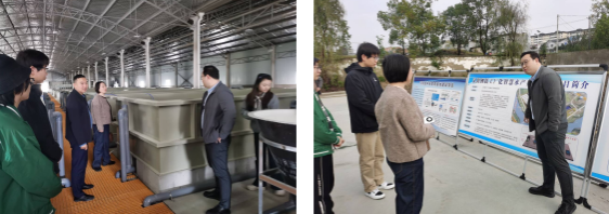 调研伊始,公司总经理张俊铭向学院专家介绍了基地的当前规模与未来规划,并重点提出在高效养殖中面临的两大技术难题:一是养殖尾水处理效率有待提升;二是水库生态养殖中因兜网形成生物膜,导致网孔堵塞并引发渔业减产。针对上述问题,张淑兰与陈晶博士结合各自科研专长,给出了针对性性建议。在尾水处理方面,建议制定系统化的优化策略,构建“人工湿地+生物净化池”的深度处理技术体系。通过种植芦苇、鸢尾等耐寒水生植物,并耦合曝气装置以增强微生物活性,从而保障低温季节的污染物降解效率。在生物膜调控方面,提议创新技术路径,包括研发新型可降解生物膜材料,以及通过投加特定微生物菌剂来优化菌群结构,从源头降低网孔堵塞风险,保障养殖效益。