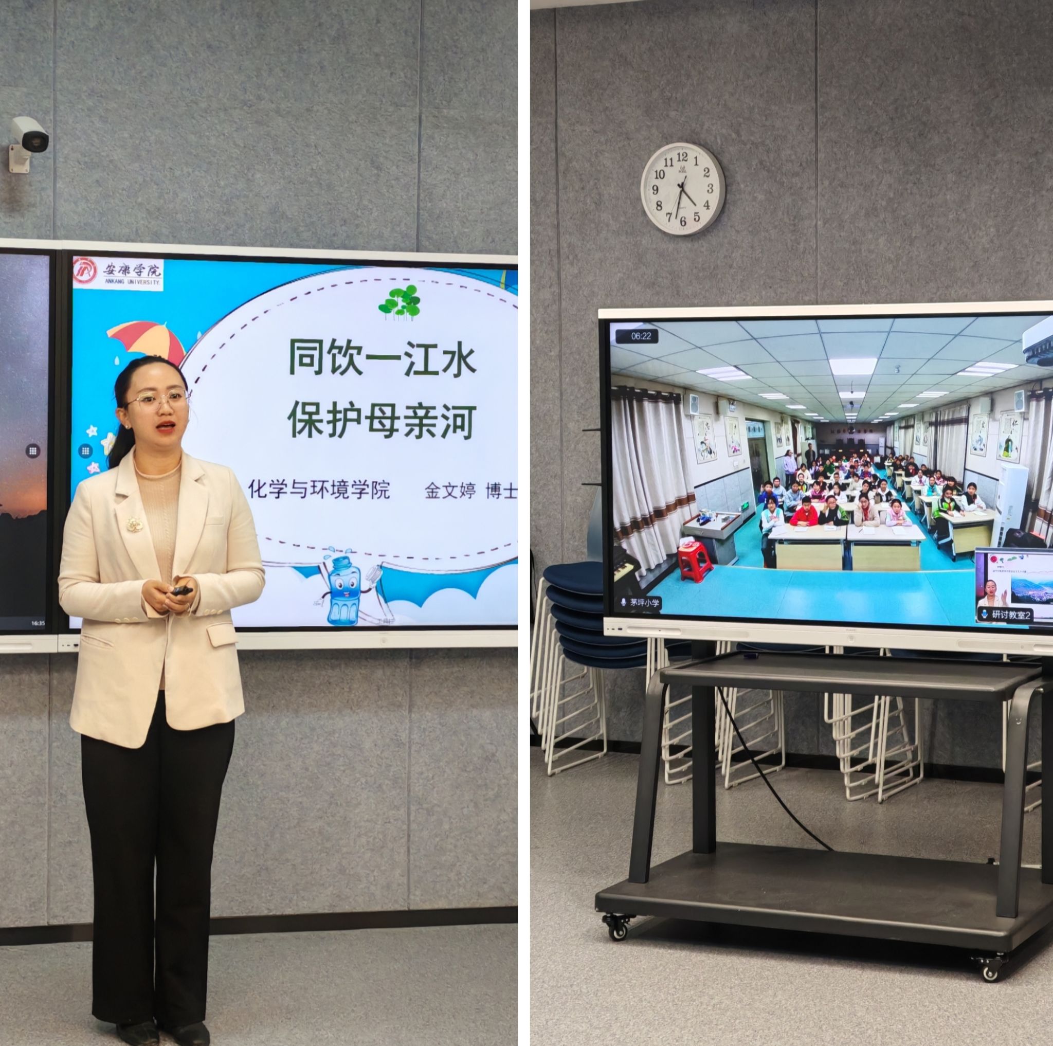 近日,安康学院“化学之光科普团”成员金文婷博士通过线上远程支教的形式为白河县茅坪镇中心小学的学生带来了一场题为“同饮一江水,保护母亲河”的汉江科普课。