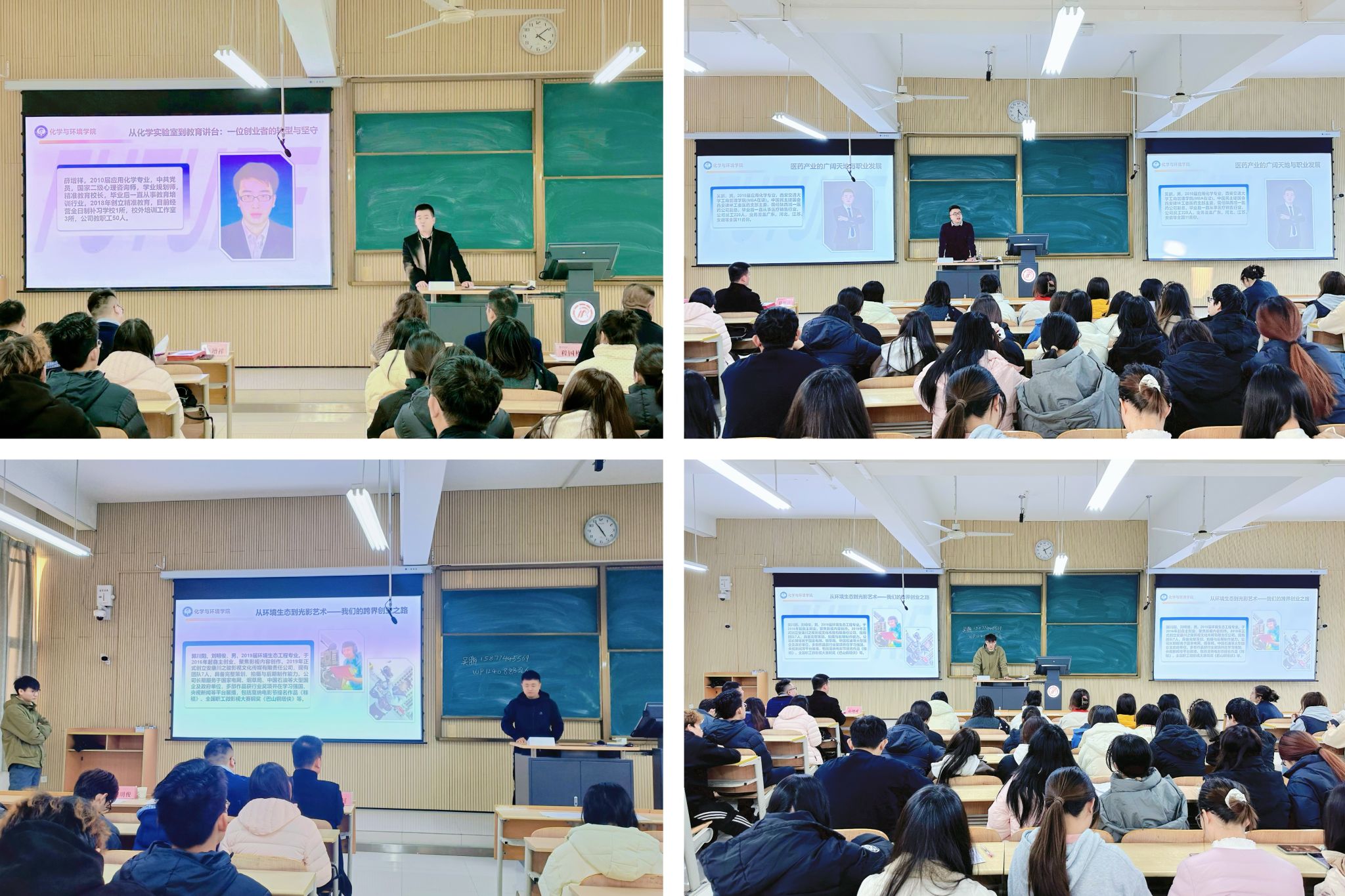 2010届应用化学专业校友薛增祥以“从化学实验室到教育讲台:一位创业者的转型与坚守”为题,讲述了从专业学习到创办精准教育机构的创业历程;同届应用化学专业校友吴鹏围绕“医药产业的广阔天地与职业发展”,分享了其在医药销售领域深耕多年、业务拓展至全国11个省份的职业经验;2019届环境生态工程专业校友郭川阳与刘明俊则以“从环境生态到光影艺术——我们的跨界创业之路”为主题,介绍了二人共同创立影视文化传媒公司,服务多家大型国企及政府单位,并屡获行业奖项的跨界创业故事。现场同学积极提问,与校友进行了深入交流。