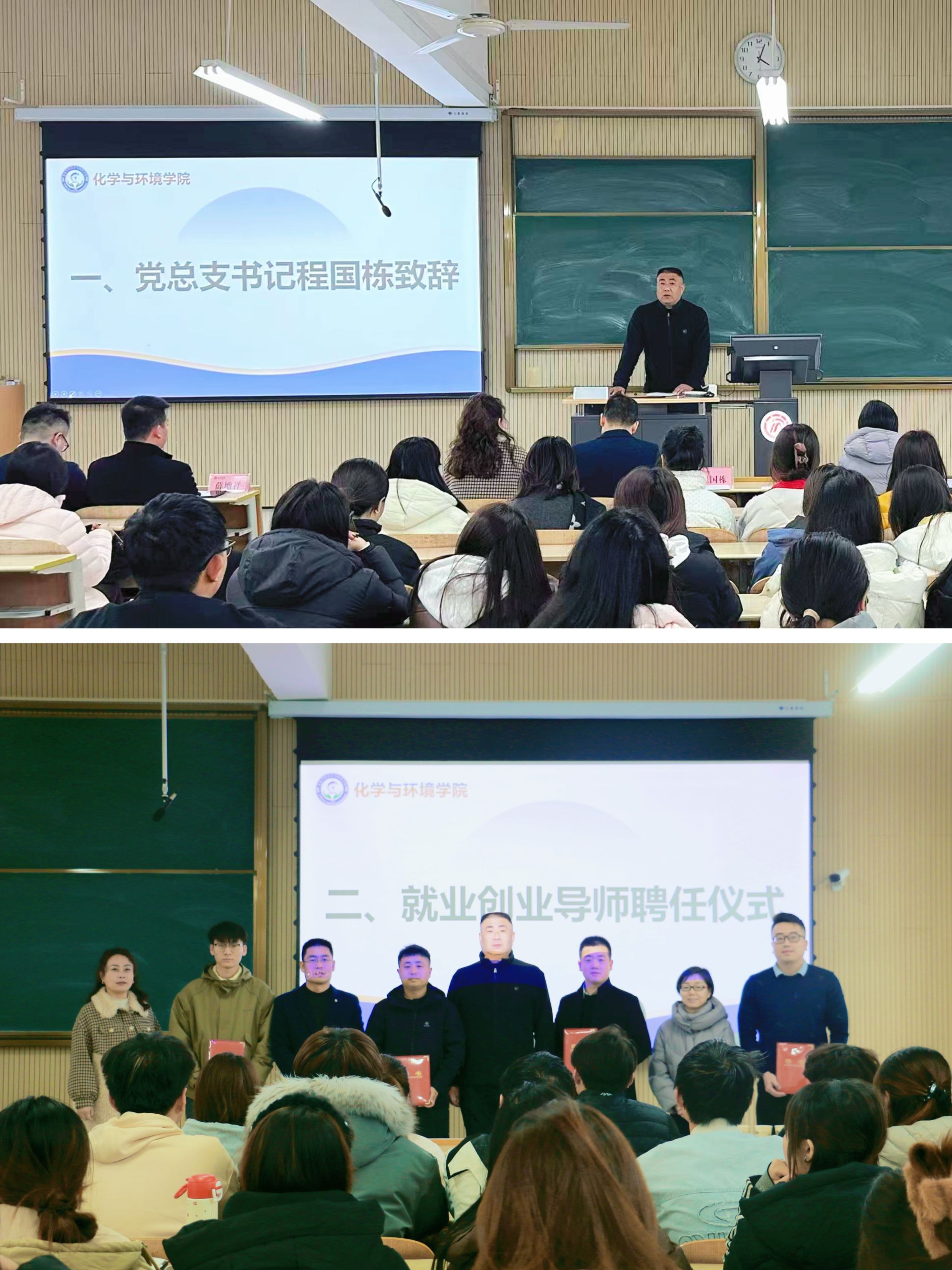 为充分发挥优秀校友的榜样示范作用,搭建校友与在校生之间的交流平台,11月26日,化学与环境学院校友大讲堂在江北校区1304教室顺利举行。学院党政领导班子成员、辅导员及2023、2024级学生共同参加,活动特邀薛增祥、吴鹏、郭川阳、刘明俊四位校友返校分享经验。