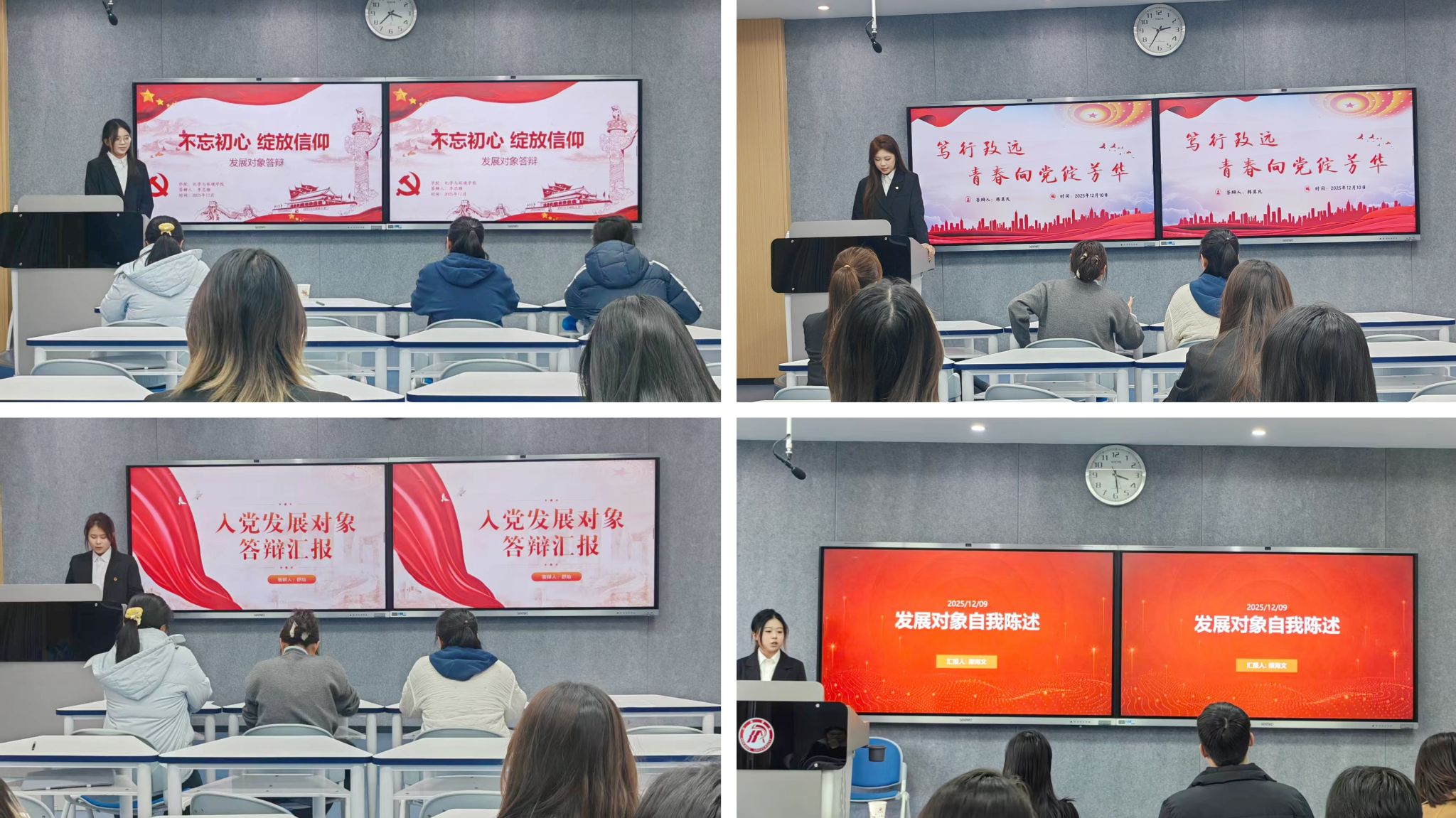 为严格落实党员发展工作要求,全面深入考察发展对象的政治觉悟、理论素养、实践能力及入党动机,确保将政治过硬、信念坚定、担当有为的优秀人才吸纳进党组织,化学与环境学院学生党支部于2025年12月10日在1207教室召开发展对象入党前答辩会。29名发展对象参加答辩,辅导员及党员教师代表出席会议。