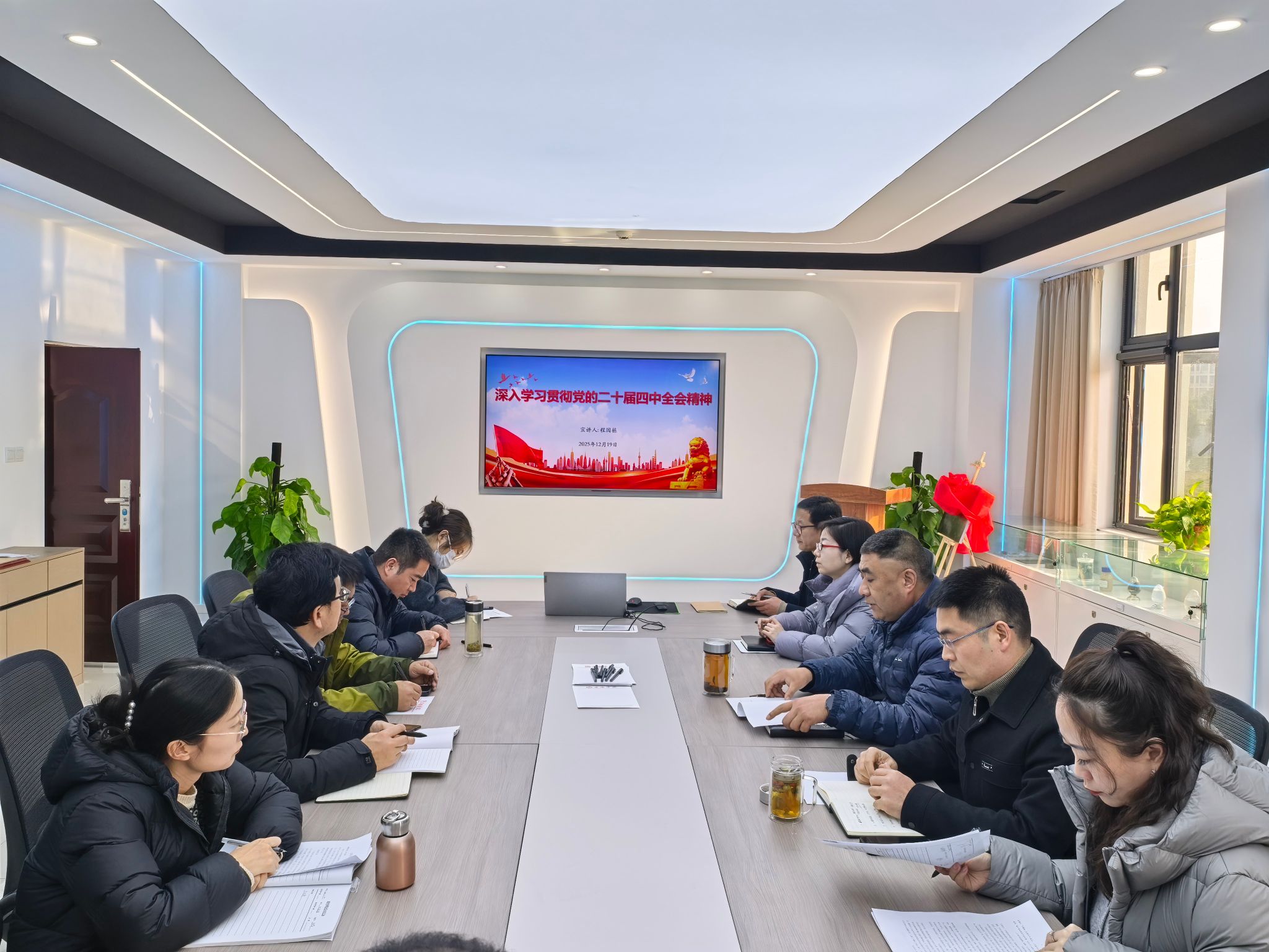 12月19日,化学与环境学院党总支召开理论学习中心组(扩大)学习会,专题学习党的二十届四中全会精神。学院党总支书记程国栋以《深入学习贯彻党的二十届四中全会精神》为题宣讲党的二十届四中全会精神,系统阐释了全会精神的重大意义、核心内涵与实践要求,引导与会人员深化思想认识,把握精神实质。