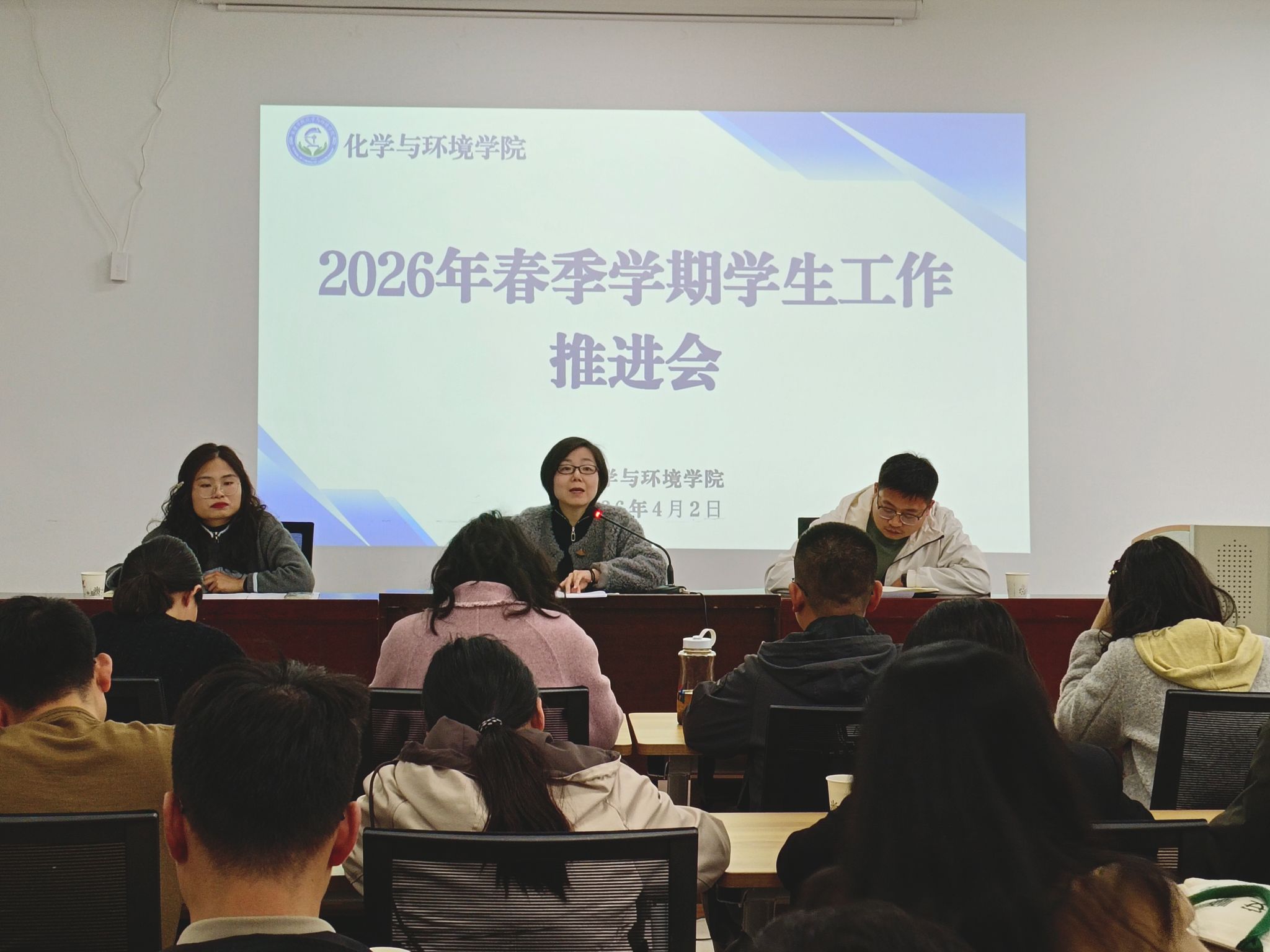 为全面落实立德树人根本任务,持续推进新学期学生思想引领、日常管理、心理健康及安全稳定等重点工作,4月2日下午,化环学院在209会议室召开2026年春季学期学生工作推进会。党总支副书记沈菲,全体辅导员及2024级、2025级班主任参加会议。会议由沈菲主持。