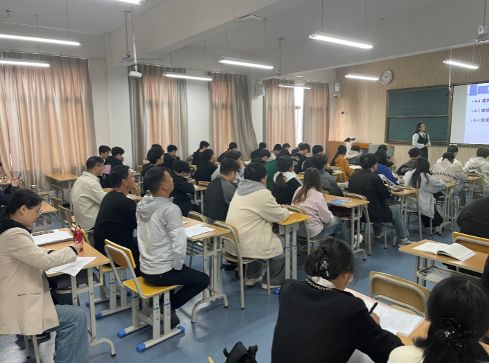 观摩课上,寇莹老师围绕《建筑施工图》这一主题展开教学。她结合化工及环境工程等专业特点,以实际工程案例为切入点,系统讲解了建筑平面图、立面图及详图的识读方法与绘制要点。课堂教学中,寇老师综合运用多媒体演示、任务驱动与小组探究等多种教学手段,注重引导学生从图纸中提取关键信息,并对易错环节进行及时点评与纠正,充分体现了以学生为中心的教学理念。