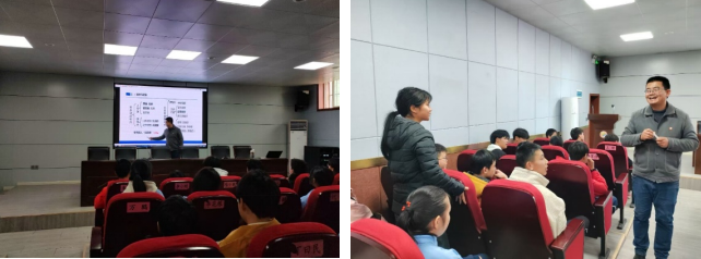 活动第一站来到四合九年制学校。闫超咸博士以日常膳食为切入点,开展趣味健康科普课堂。授课中,他条理清晰地讲解糖类、脂肪、蛋白质、水、无机盐、维生素六大人体必需营养素的作用,重点剖析过量摄入糖分、油脂带来的健康危害。同时,结合生活实例手把手指导学生读懂食品营养成分表与配料表,传授挑选低糖低脂、高蛋白健康食品的实用技巧,引导青少年养成科学饮食、健康消费的良好习惯。课堂氛围生动鲜活,同学们紧跟讲解节奏,主动动脑思考、举手发言、积极互动,在轻松的学习氛围中夯实健康知识基础。