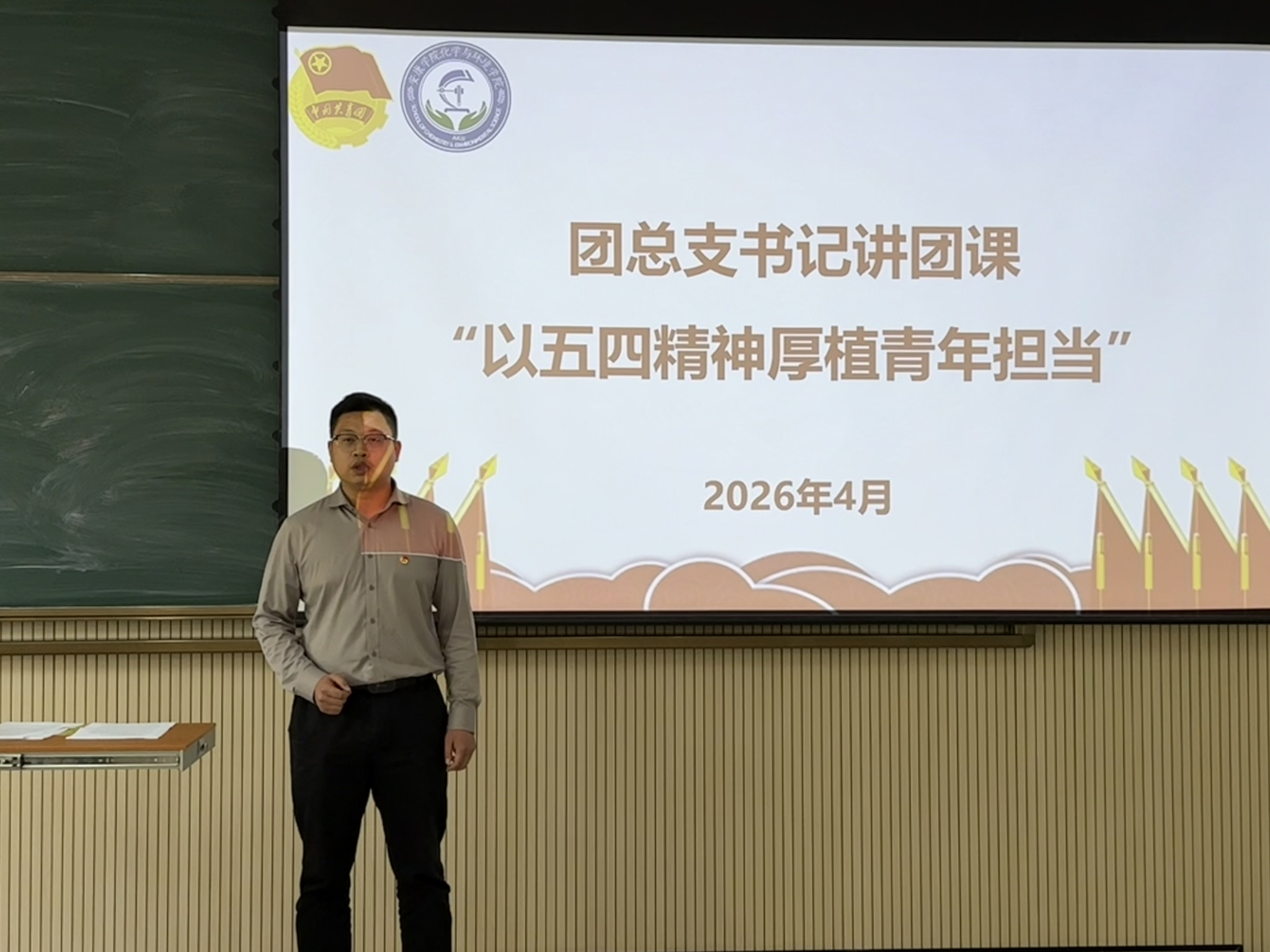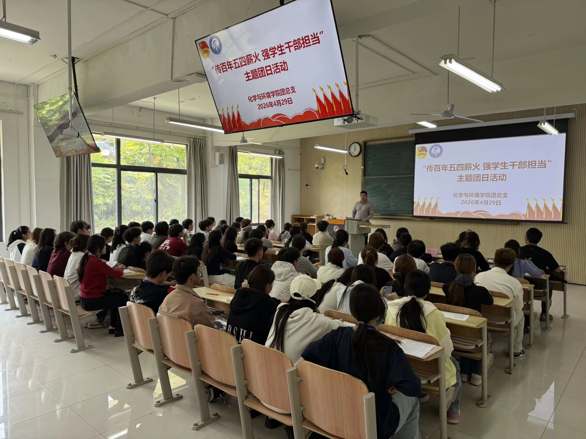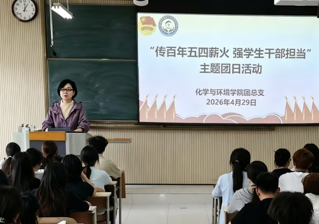 为传承弘扬“爱国、进步、民主、科学”的五四精神,进一步夯实团学工作基础、提升学生干部履职能力,化学与环境学院团总支于4月29日在江北校区1116教室开展了“传百年五四薪火,强学生干部担当”主题团日活动。学院党总支副书记沈菲、团总支书记成沛锐、学工办副主任寇静媛、辅导员谢德安,团总支、学生分会学生干部及2024级、2025级团支部书记参加了活动。活动由成沛锐主持。